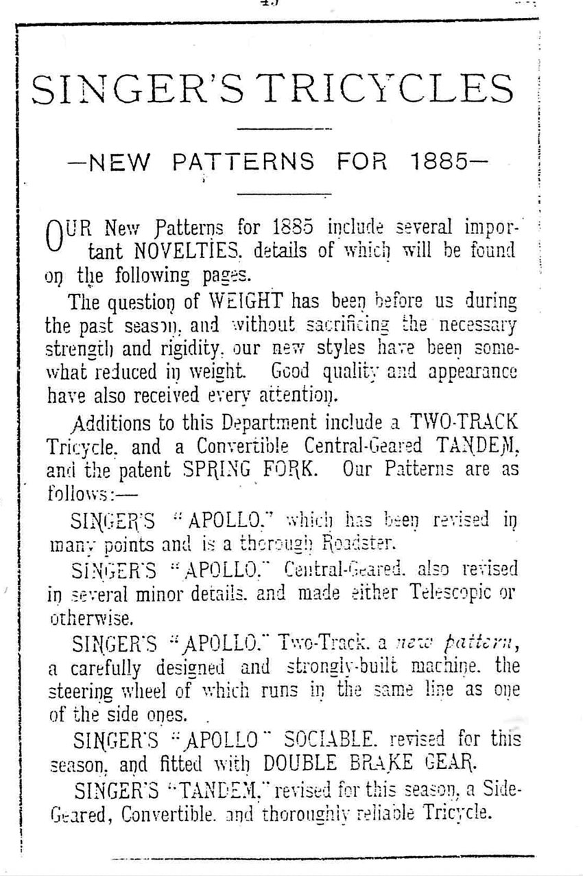 1885 SINGER CATALOGUE EXTRACTS