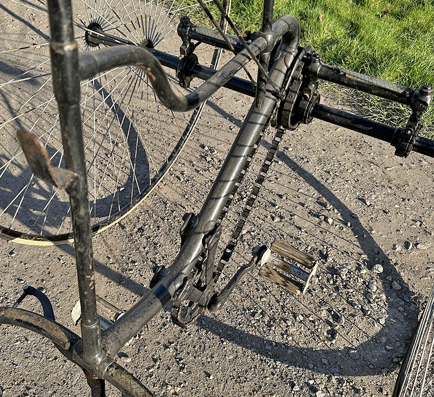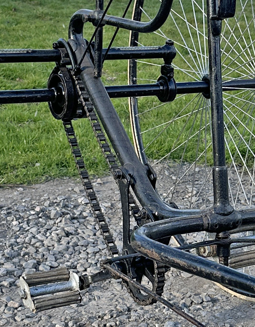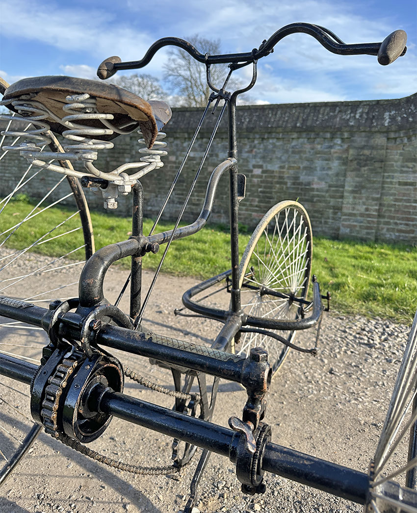 Saddles were a matter of a customer’s personal choice. This tricycle was illustrated in the 1888 Quadrant catalogues with an ‘Arab Spring saddle support supplied by John Harrington & Co.