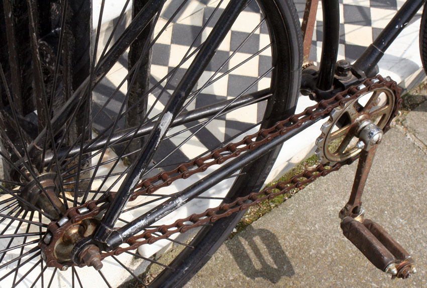 The previous owner of this bicycle bought it in France forty years ago. When he moved to America, he took it with him, and I bought it from him there last year. Since it arrived in England, I have re-spoked one of the wheels and fitted new tyres. I’ve ridden it around Brighton.