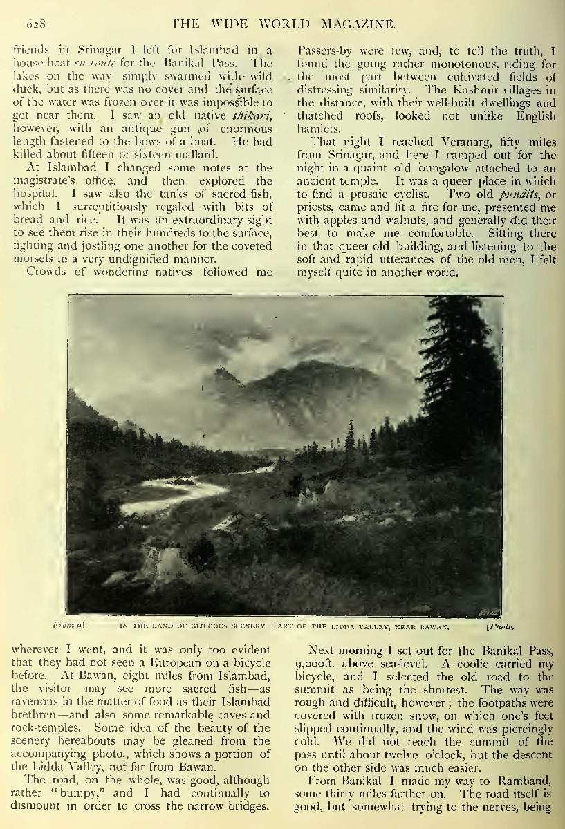 From Banikal I made my way to Ramband, some thirty miles farther on. The road itself is good, but somewhat trying on the nerves, being only 5ft or 6ft wide in places, with sheer precipices on the outer side going down thousands of feet to the far-away river.