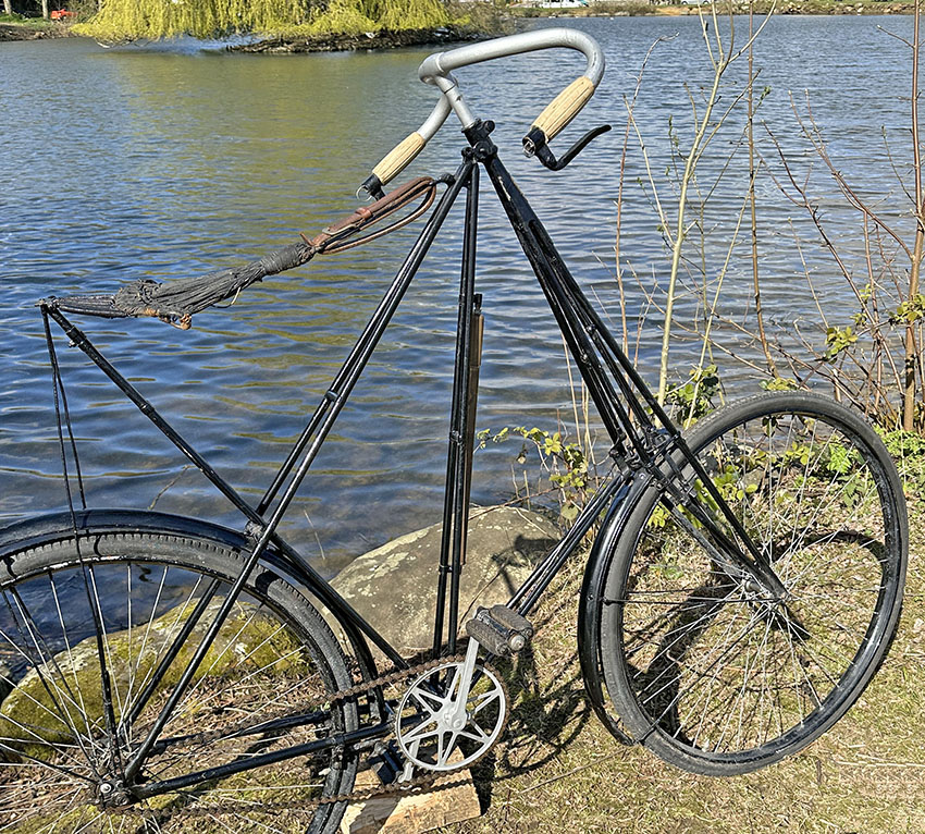 The 1880s and 1890s saw the unstable ordinary or ‘penny farthing’ giving way to the chain-driven smaller wheeled safety bicycle. Mikael Pedersen – a Danish inventor who by 1893 was living in Dursley, Gloucestershire – took out a patent in the same year for a very different design of bicycle weighing only nineteen pounds.