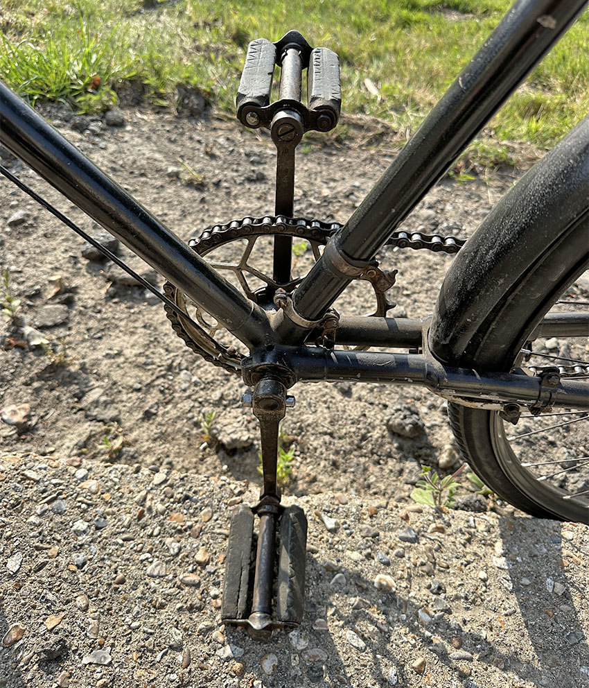 This machine was most likely not built as a military bicycle. But when war broke out in 1914, the government did not have a supply of military bicycles. They did not even have enough rifles and uniforms! Though the government did order bicycles from the manufacturers, the overwhelming majority of bicycles used in the war were ordered directly from the manufacturers by the men themselves or by the relevant cyclist battalion if it had funds available. Often cycle purchases were provided by local industrial groups. Many soldiers in the Cyclist Corps used their own personal bicycles.