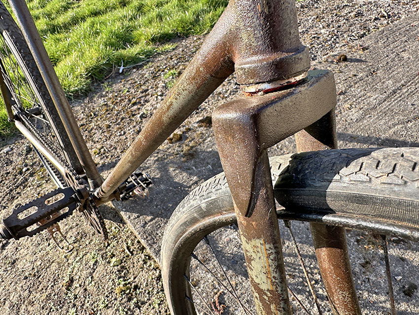 Meanwhile, the Woods is in good original unrestored condition. The tread pattern on the rear tyre shows it to be from the same era as the bicycle. It has been in my friend’s storage for several decades, so a tyre change would be a good idea if it is to be ridden over any distance. Nevertheless, they pump up OK and it’s ready to ride.