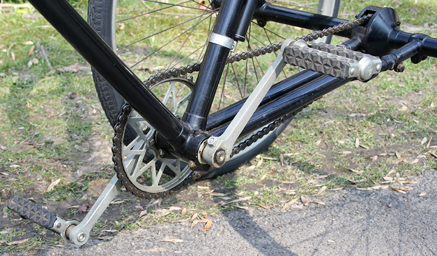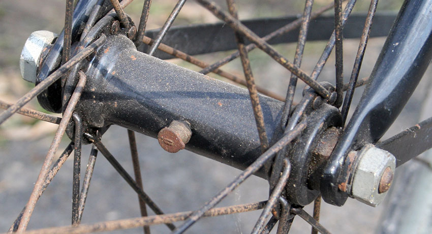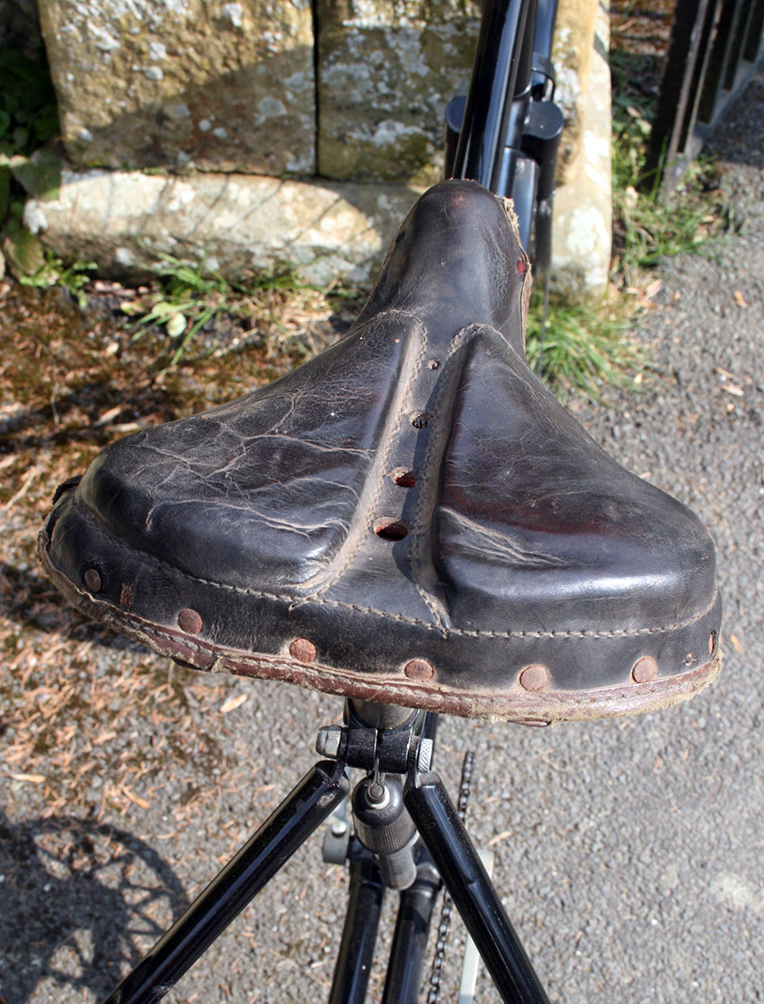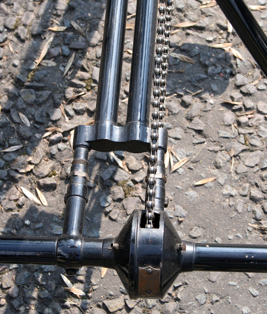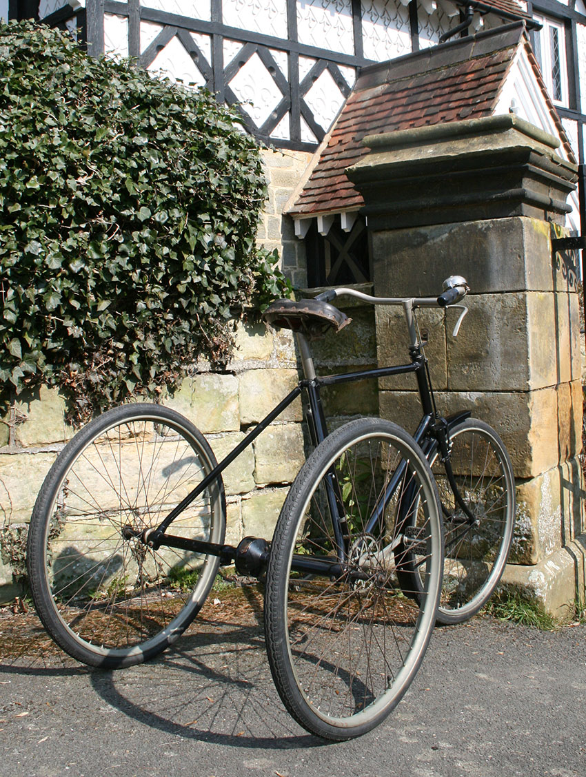 The tricycle uses Abingdon fittings and rear axle. The diff has an Abingdon ‘King Dick’ plate to display Starley’s Patent no 7752 of 1892.