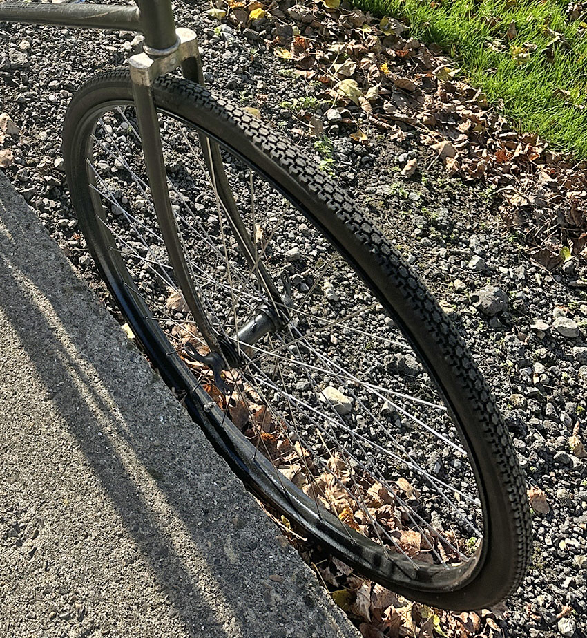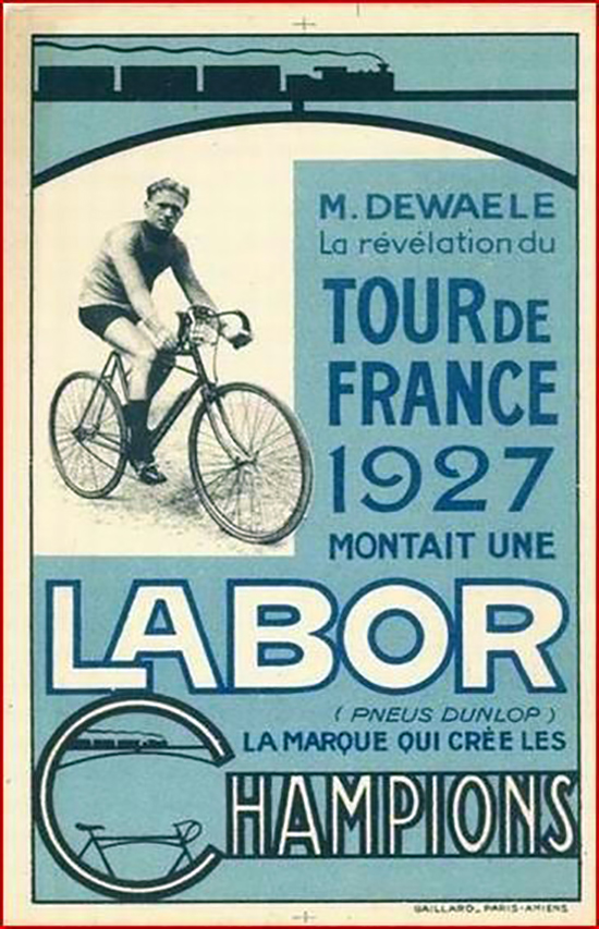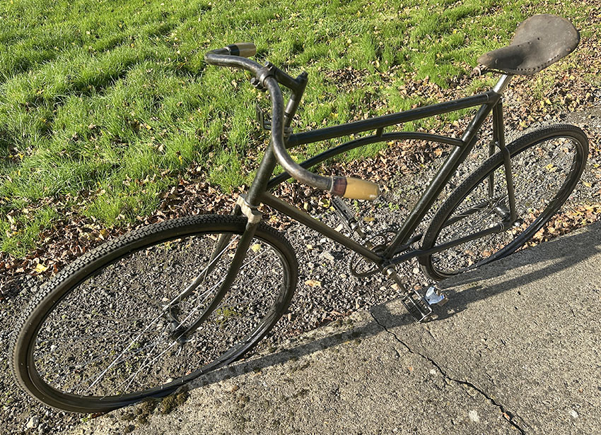 Iver Johnson introduced the distinctive Truss Bridge frame in America in 1901. World champion racing cyclist Major Taylor rode Iver Johnson bicycles. When he raced in France in the early 1900s, he used an Iver Johnson Truss Bridge, and the style caught on there. Labor became the French license holder for this design, and various French companies made their own versions until the late 1920s. Many of the French firms built versions with slight variations, suggesting that they were unlicensed copies (as suggested in the Labor advertisement below). However, this example looks the same as the Labor (except that it has a larger frame than that shown in the advertisement), so I assume that it was licensed by Labor.