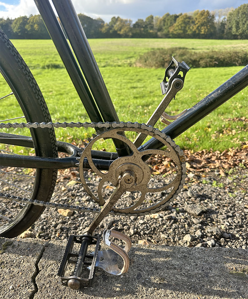 This post-WW1 French road racer has blind (enclosed) front fork ends which is more common on earlier cycles, so it may be earlier than 1920. It’s in good all round condition, it is set up for long distance cycling, and is ready to ride.