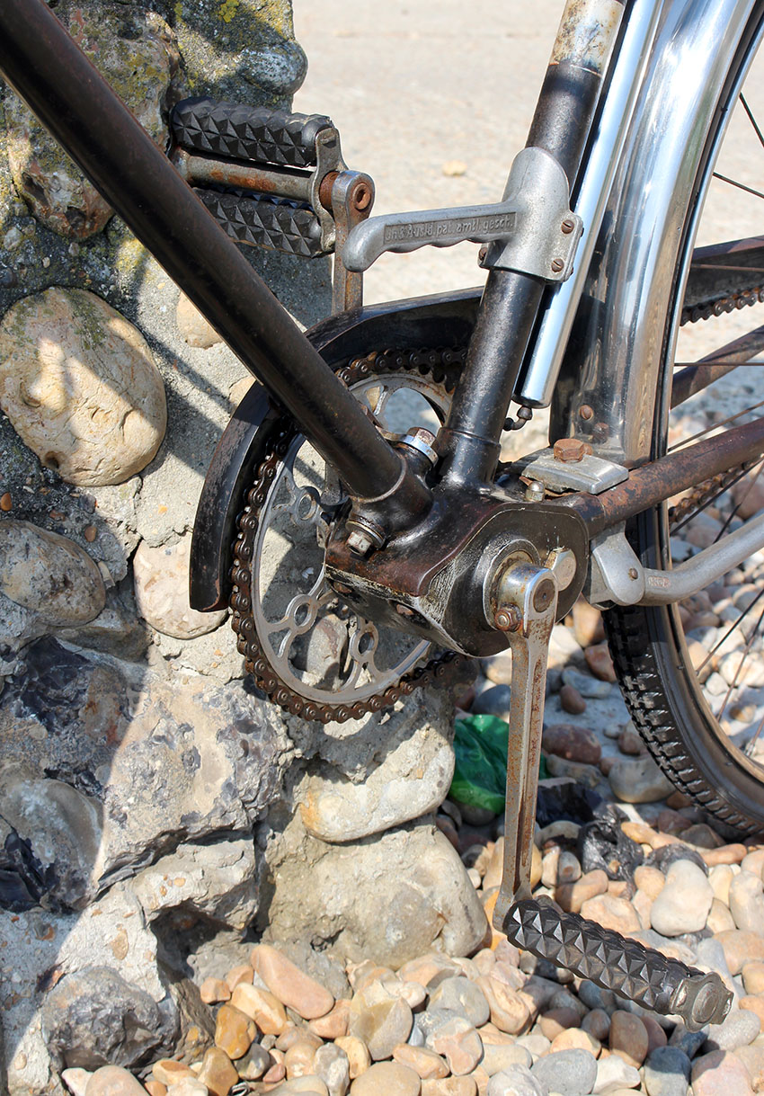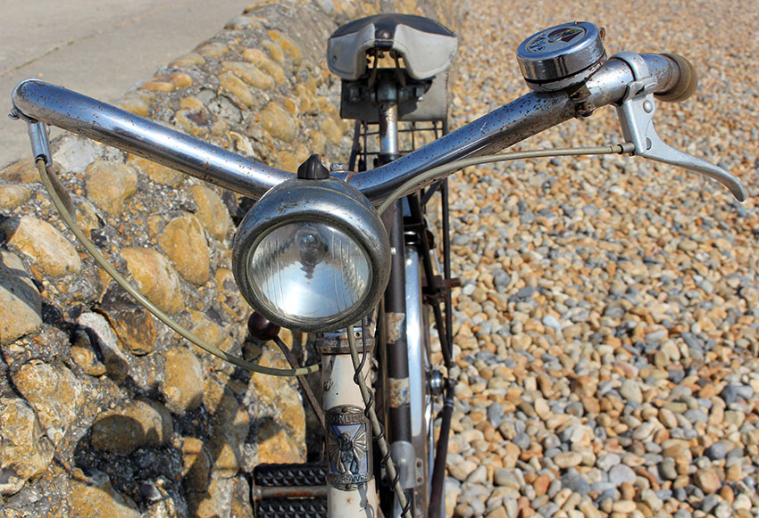 The Condor 3-speed was not made for long, and is particularly rare these days. This example retains original unrestored paintwork in good condition, though the Condor transfer (decal) on the chaincase is very faded (below). The lighting set is untested. It was recently serviced and new tyres and tubes fitted. This rare and attractive machine rides well and is ready to use.
