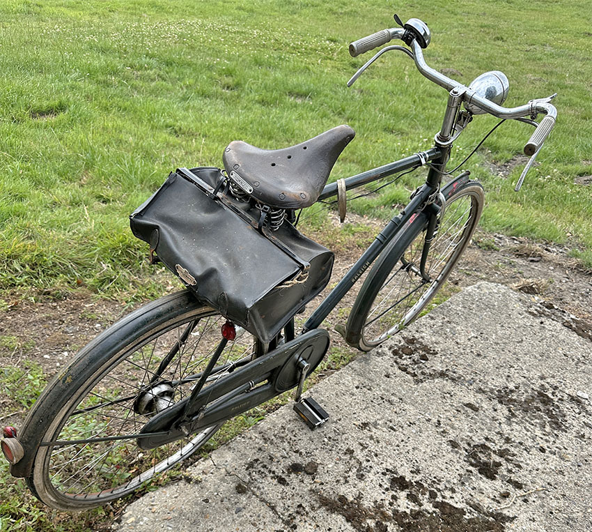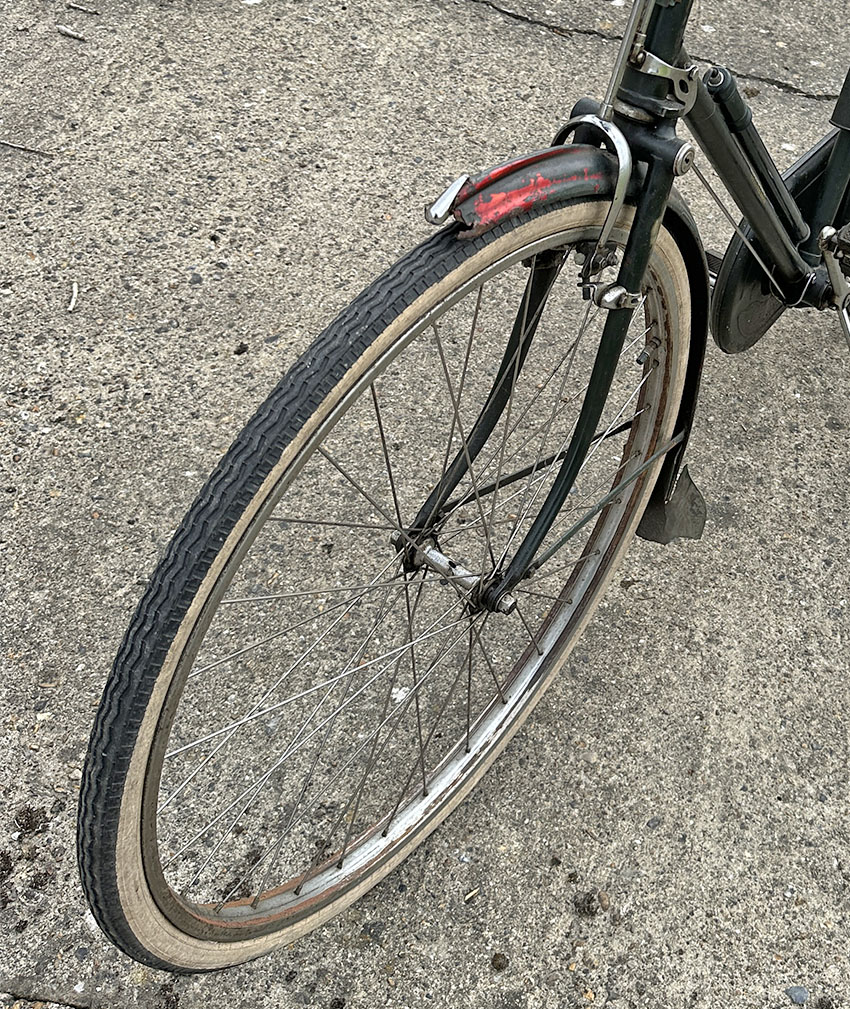 This 62-year-old Raleigh Dawn Tourist is nowhere near as old or rare as my other bicycles, but I felt sorry for it languishing in a shed after its custodian had passed away and I hope that by photographing it and advertising it for sale a new owner will buy it and love and cherish it. I’ve noticed a little rust at the front of the front mudguard and the rear of the rear mudguard. But other wise it’s in good unrestored original condition, requiring only a polish and a service to make it ready to serve a new custodian at least another 62 years.