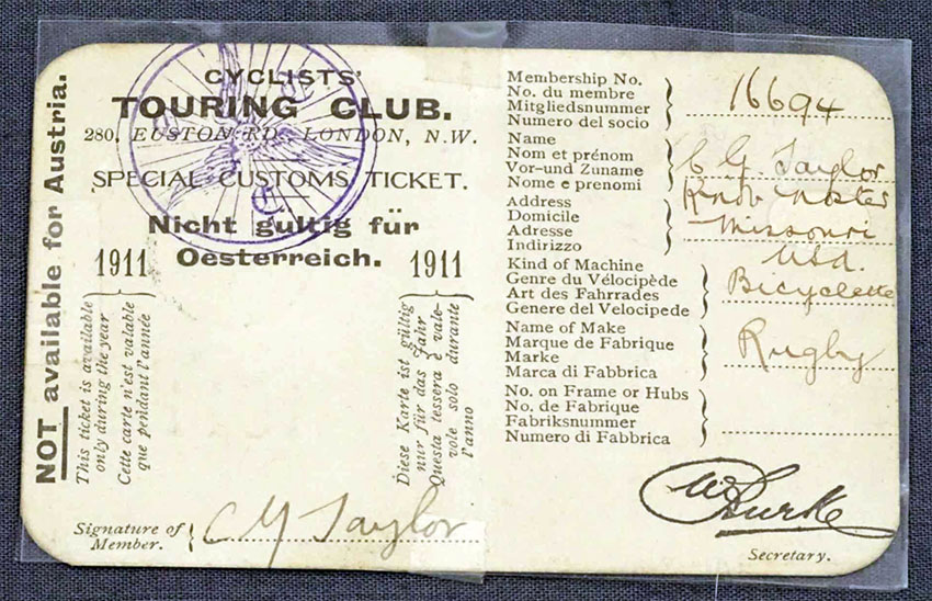 1890s cycling permits & club membership cards