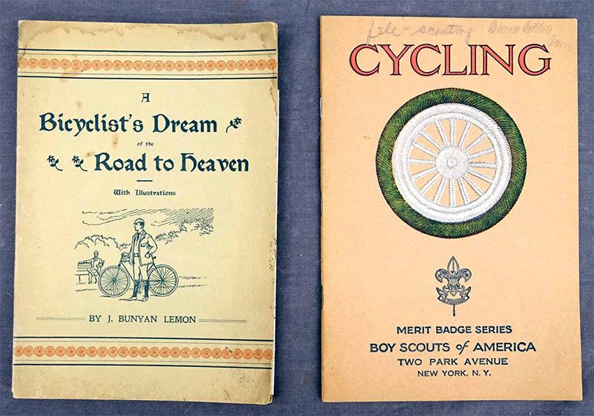 These two photograph albums feature bicycles on their covers. The inside pages are empty
